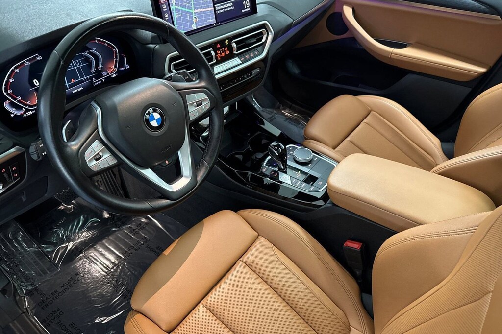 This 2022 BMW X3 sDrive30i is a One Owner vehicle, exterior, and interior. Key features include LIVE COCKPIT PRO W/NAVIGATION, PREMIUM PACKAGE 2, FINE WOOD OPEN-PORED ASH GRAIN TRIM, HEATED STEERING WHEEL, COGNAC PERFORATED SENSATEC UPHOLSTERY, COMFORT ACCESS KEYLESS ENTRY, HEATED FRONT SEATS, PANORAMIC MOONROOF, Rear Parking Aid, Blind Spot Monitor, Cross-Traffic Alert, and much more!