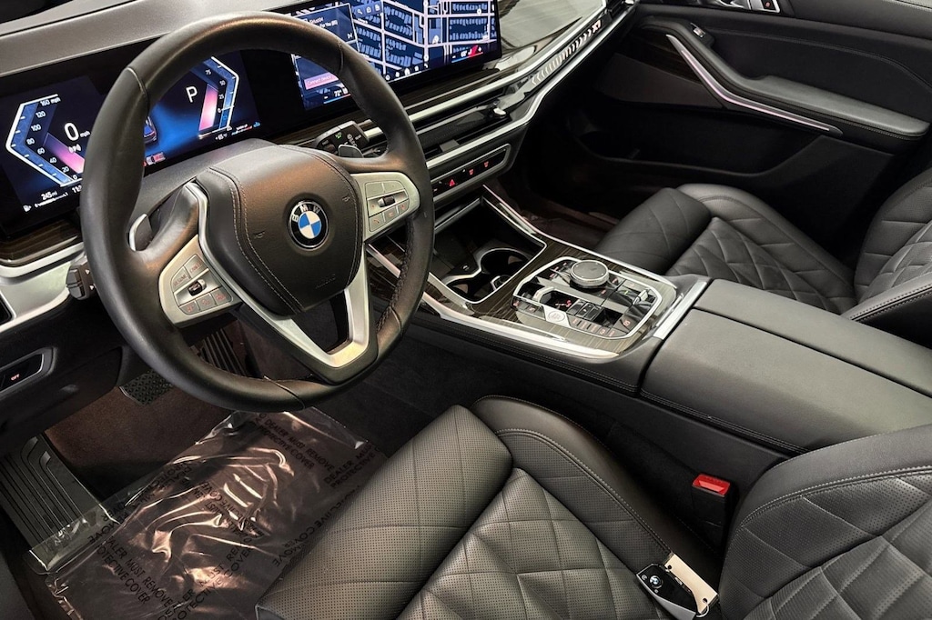 This 2024 BMW X7 xDrive40i is a One Owner vehicle with a Clean Carfax, exterior, and interior. Key features include PARKING ASSISTANCE PACKAGE, PREMIUM PACKAGE, CLIMATE COMFORT PACKAGE, FINELINE STRIPE BROWN HIGH GLOSS WOOD TRIM, 2ND ROW CAPTAIN'S CHAIRS, Turbocharged, Panoramic Roof, Heads-Up Display, and much more!