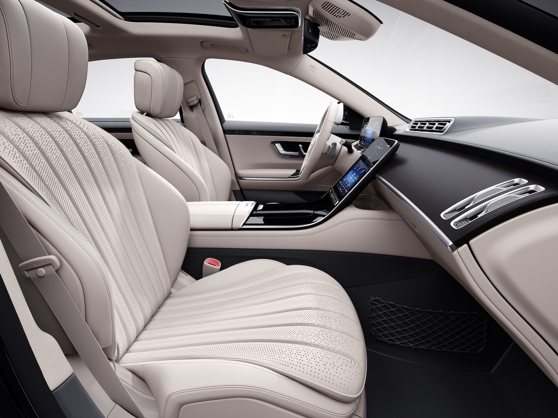 Standard power front seats come with 12-way adjustability and memory settings, keeping you comfortable at every turn. At the same time, infotainment-based controls for seat cushions and backrests give you endless room to settle in and stay secure. Active multi-contour seating gives you massage functionality, while dual-zone automatic climate control comes with atomized fragrance technology. Leather upholstery is standard for the S 500, along with power front/rear sunshades and ambient cabin lighting.