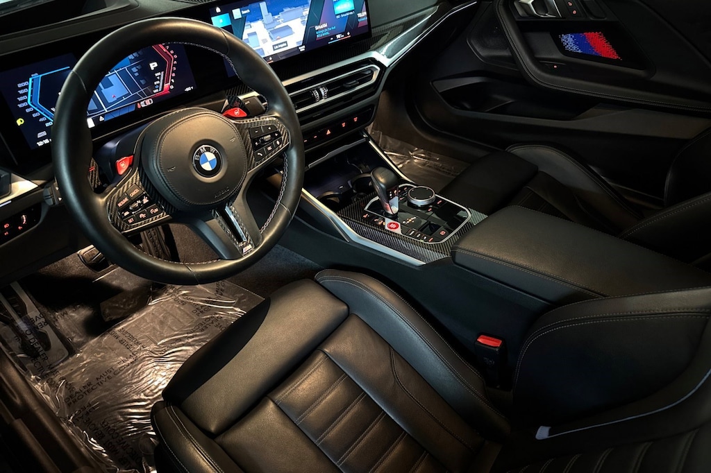 This 2024 BMW M2 Coupe is a One Owner vehicle, exterior, and interior. Key features include LIVE COCKPIT PRO, REMOTE ENGINE START, SHADOWLINE PACKAGE, M CARBON ROOF, WIRELESS DEVICE CHARGING, LIGHTING PACKAGE, PARKING ASSISTANT, BLACK W/M COLOR HIGHLIGHT VERNASCA LEATHER UPHOLSTERY, Turbocharged, and much more!